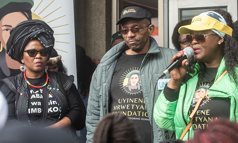 Speaking on the steps of the post office, Uyinene’s mother, Nomangwane Mrwetyana, was clear: “The wound is still oozing. It’s still very open. As a family, we appreciate you all for walking this journey with us. To the men that are here, please hold each other accountable. It is not nice, as you can see. It is still a great loss.”