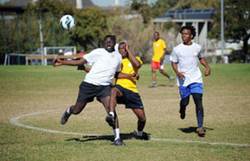 We Africans love our soccer. So, naturally, the Students' Representative Council and international student societies at UCT chose to kick off their contributions to Africa Month with a game of diski on 5 May. The game was a one-sided affair – the southern Africa side ran out easy 6-1 winners against a side representing southern and eastern Africa – but as the latter showed after their late consolation goal, celebration is the name of the game in May.