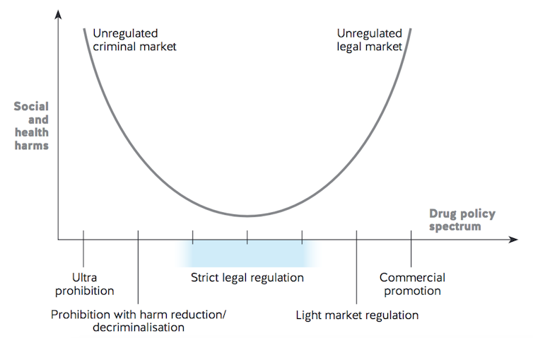 What’s particularly useful about legal regulation, according to research, is that it allows controls to be put in place over everything from products (dose, preparation, price, and packaging) to vendors (licensing, vetting and training requirements); from who has access (age controls, licensed buyers, club membership schemes) to where and when drugs can be consumed.