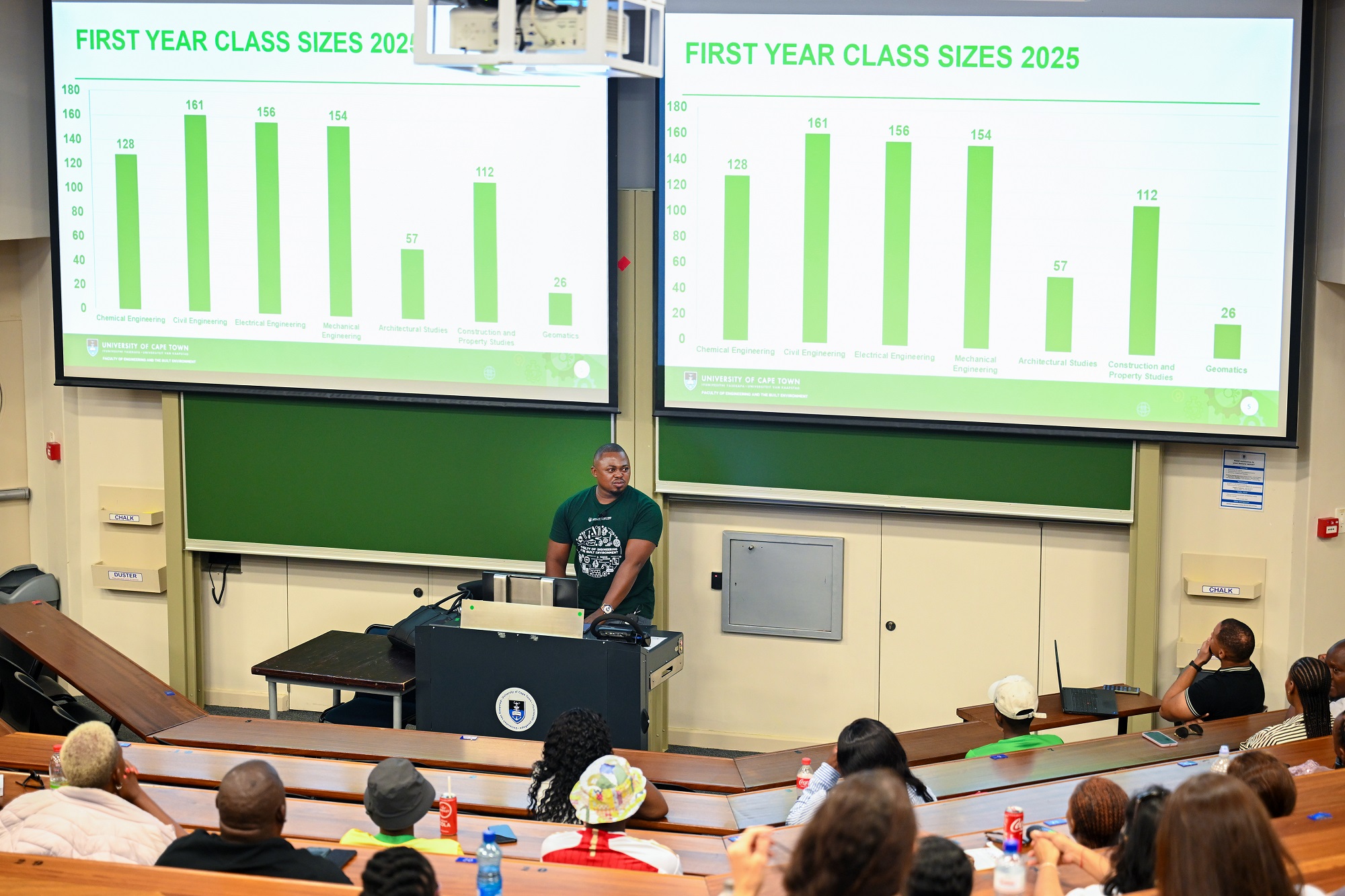 Students’ Representative Council (SRC) president, Kitso Mojapelo, reminded the audience that UCT is a place of shared responsibility. Speakers reminded first-years that they own the responsibility of making the most of the next few years. In return, the institution will cultivate an environment in which they can thrive.