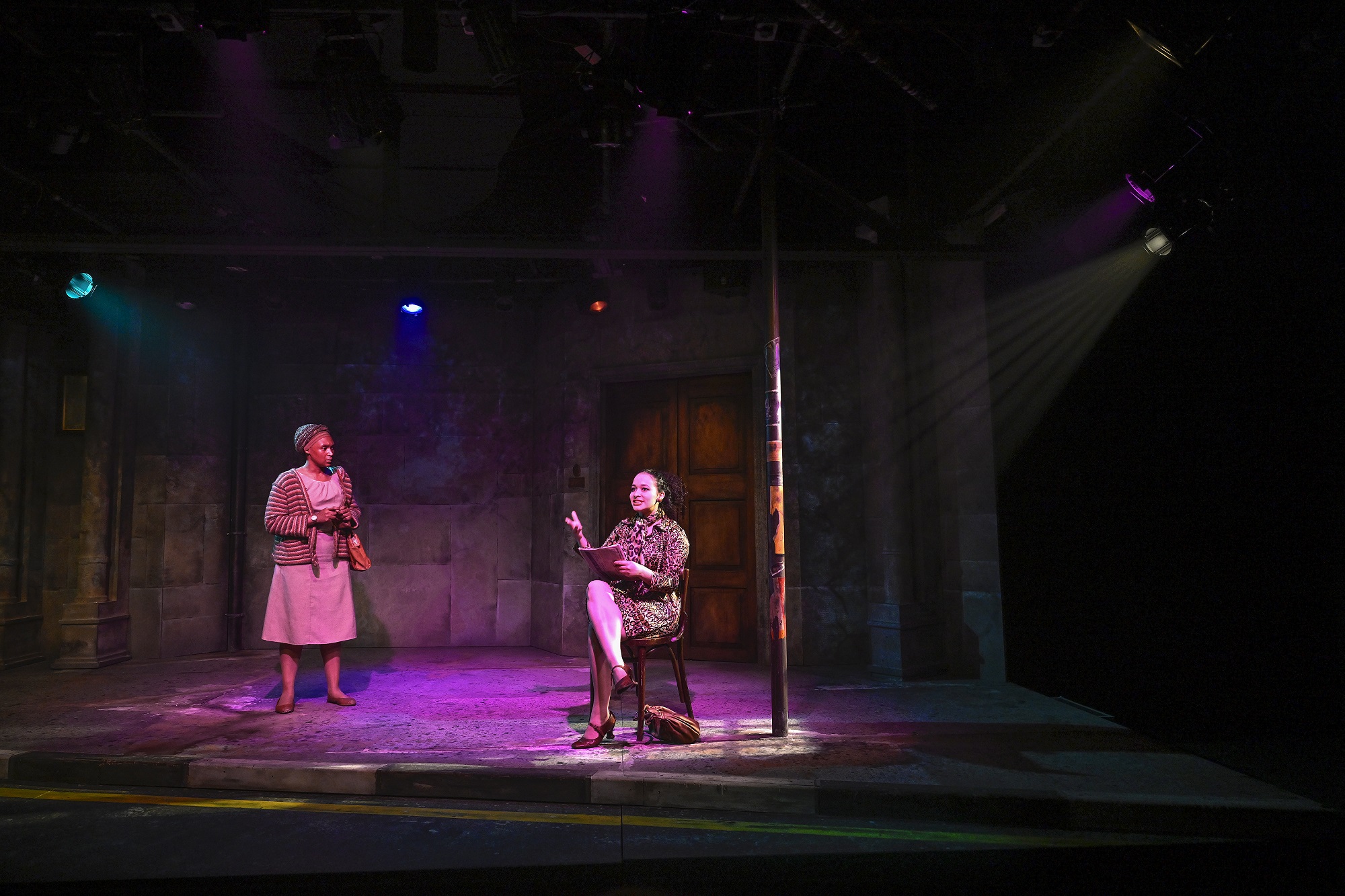 The doors of the government warehouse loom large, imposing, almost overwhelming in scale. “I wanted the doors to feel big,” Kweyama noted, “so that the women feel small in comparison. That’s how bureaucracy makes you feel – insignificant. You stand outside something vast and immovable. The set isn’t merely a background – it represents the system.”