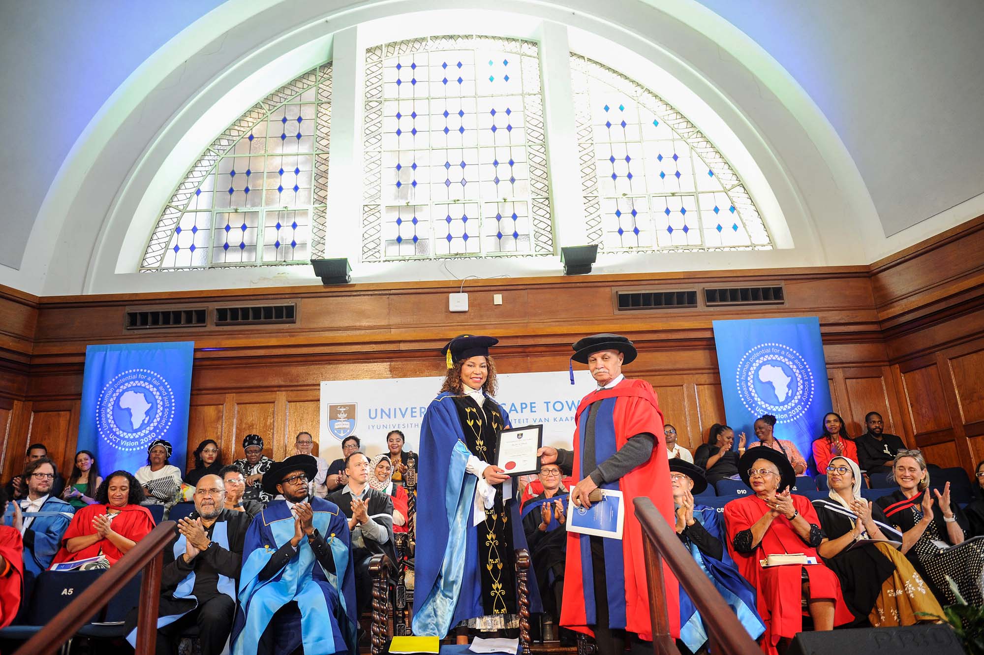 Before the ceremony, Werner interacted and enjoyed light-hearted moments with the UCT leadership, including former chancellor Graça Machel. Dr Precious Moloi-Motsepe, current UCT chancellor, was also present.